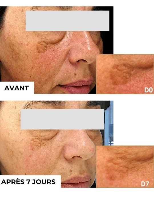 Formulan förenar glykolsyra, hyaluronsyra och dionsyra för att förnya och jämna ut huden, medan retinol, niacinamid och stabiliserat vitamin C arbetar i synergi för att stimulera cellförnyelsen, reducera mörka ringar och motverka puffighet.